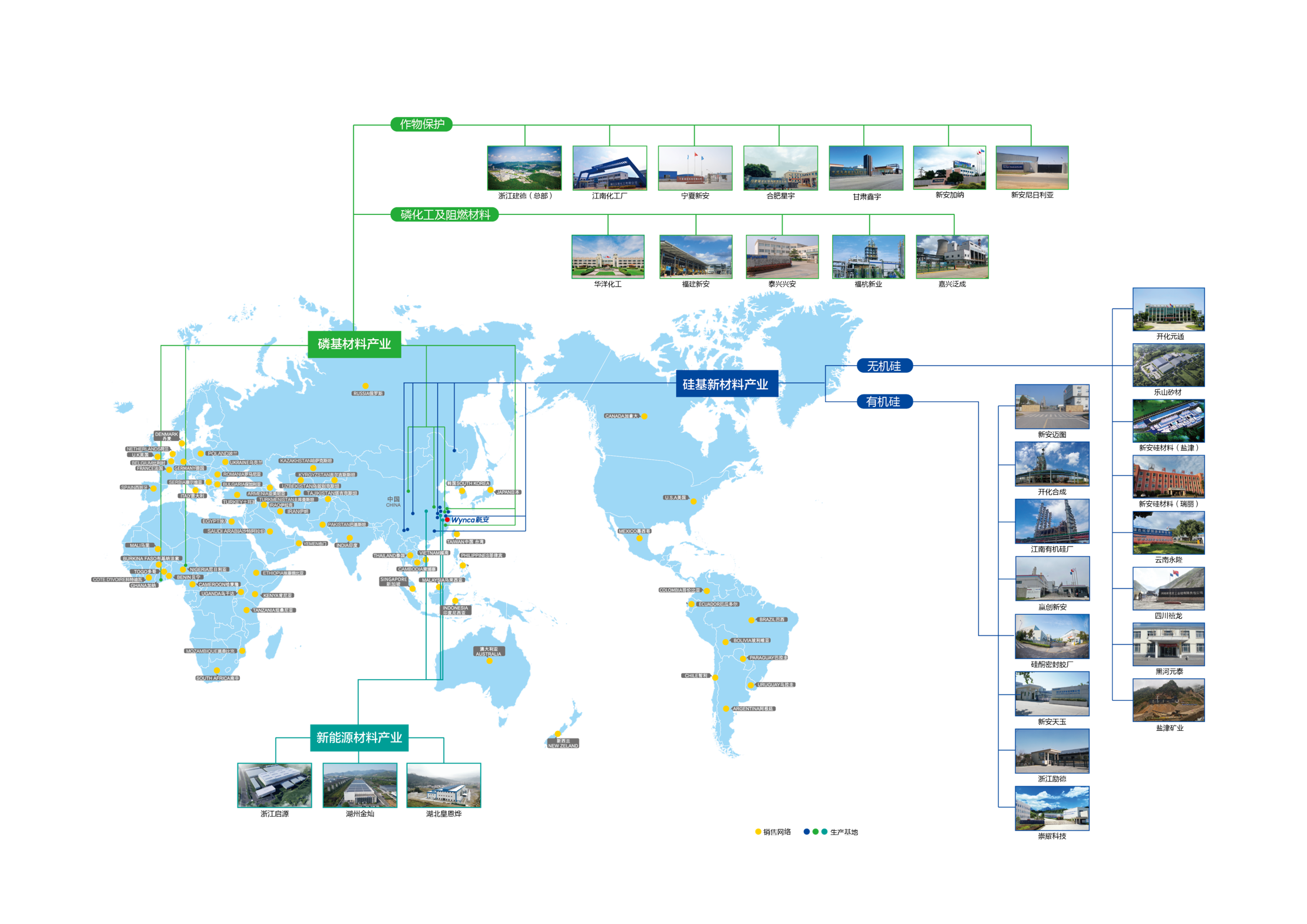 新安主营作物保护、硅基新材料、新能源材料三大产业,其中作物保护形成了“中间体-原药-制剂”一体化发展模式,涵盖种子种苗、除草剂、杀虫剂、杀菌剂、作物营养等完整的作物保护体系,为保障粮食安全、助力增产增收提供植保综合解决方案;硅基新材料拥有从上游硅矿开采冶炼、有机硅单体合成、下游产品制造的完整产业链,产品广泛应用于电力通信、轨道交通与汽车、医疗健康、电子科技等领域,畅销全球130多个国家和地区;新能源材料基于“磷基、硅基”两大产业基础与优势,围绕新能源应用场景打造材料综合解决方案,构建“三足鼎立”的新发展格局。